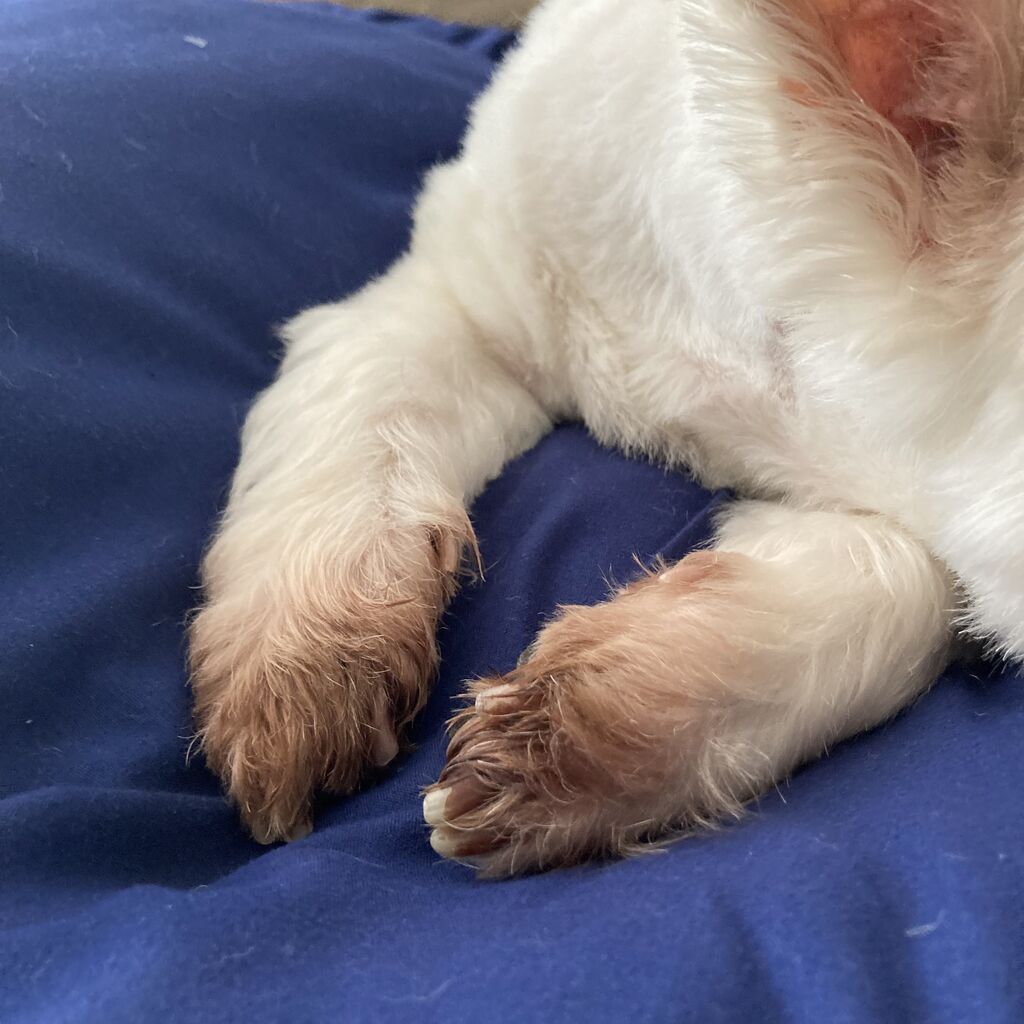 うちの子も一時期ずっと手を舐めてて止めてましたけれど、病院で頂いた薬と頻繁な入浴でだいぶ改善しました!