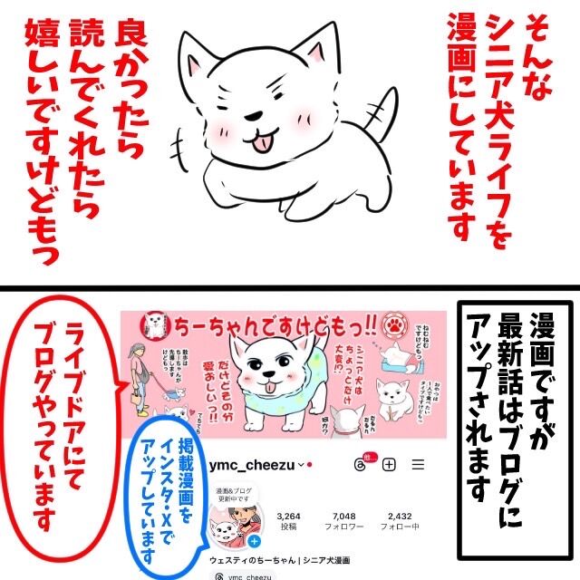 先日〝わんちゃんホンポ〟にてちーちゃんの記事をアップして頂いた事で、とても反響をいただきました。同じようにシニア犬で頑張っている方からも多くDMをいただき本当に感謝です。