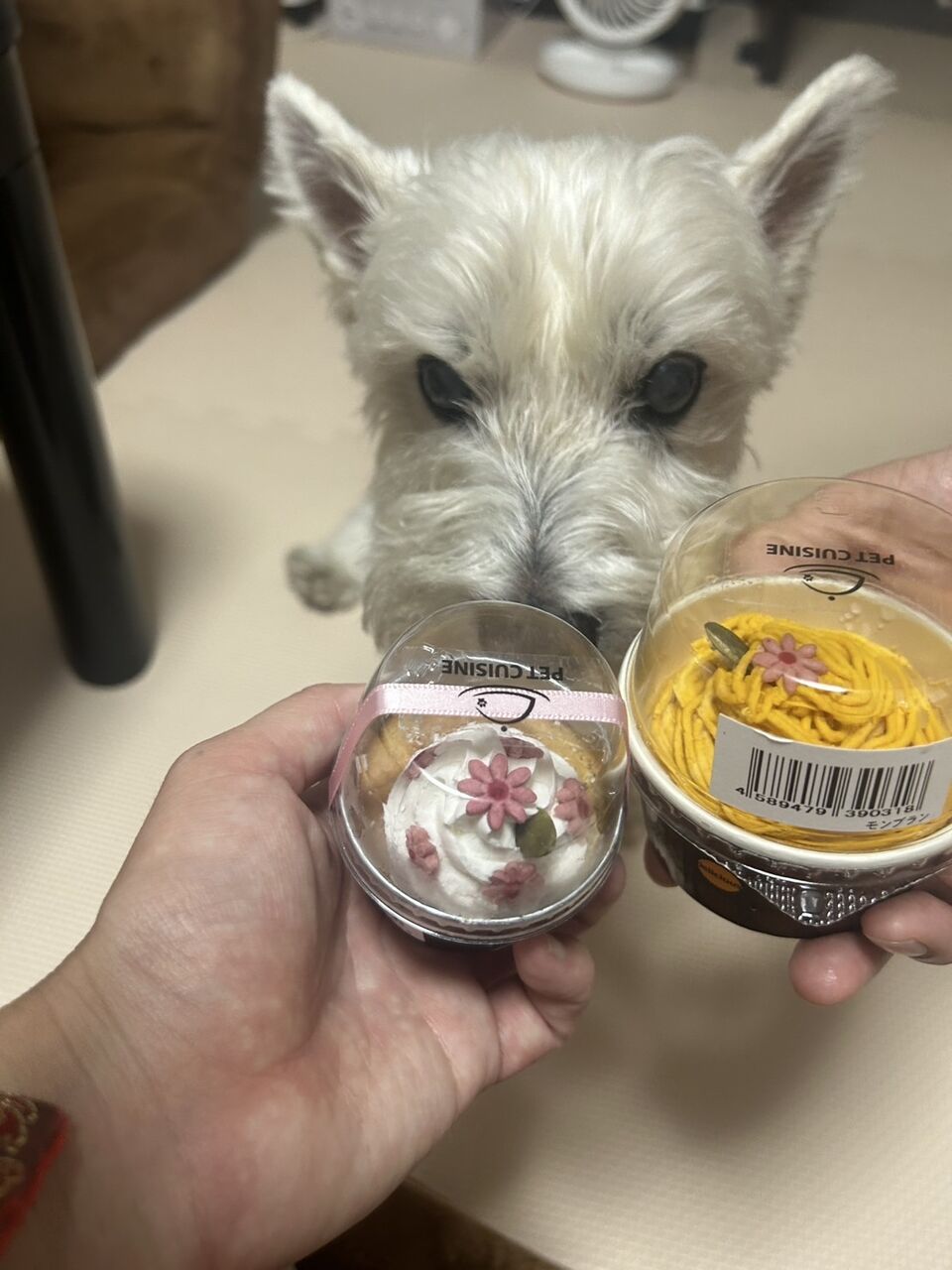 この日も私が友人からいただいたお土産をテーブルに置いた瞬間、目がキラキラ…というよりギラギラ(笑)になって、まるで「自分も同じものを食べたい!」と全身でアピールしてきました。
